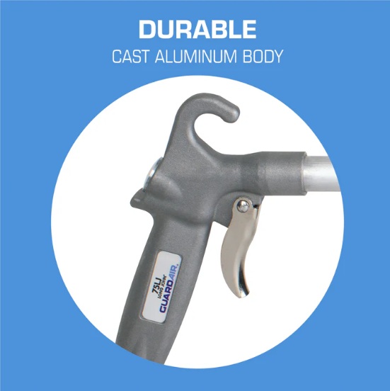 Guardair Emniyetli Hava Tabancaları, hava kaçağı riskini azaltan güçlü alüminyum gövdesi sayesinde basınçlı havayı verimli kullanır. Bu sayede işletmelere ekonomik, güvenilir ve sürdürülebilir bir çözüm sunar.
