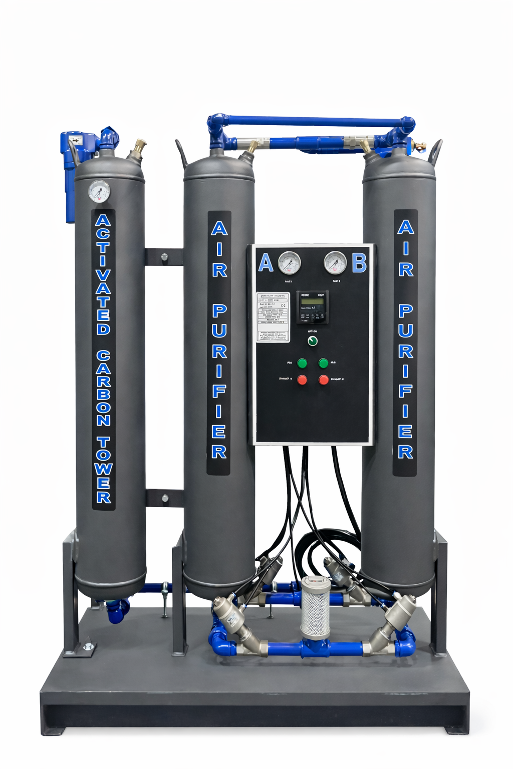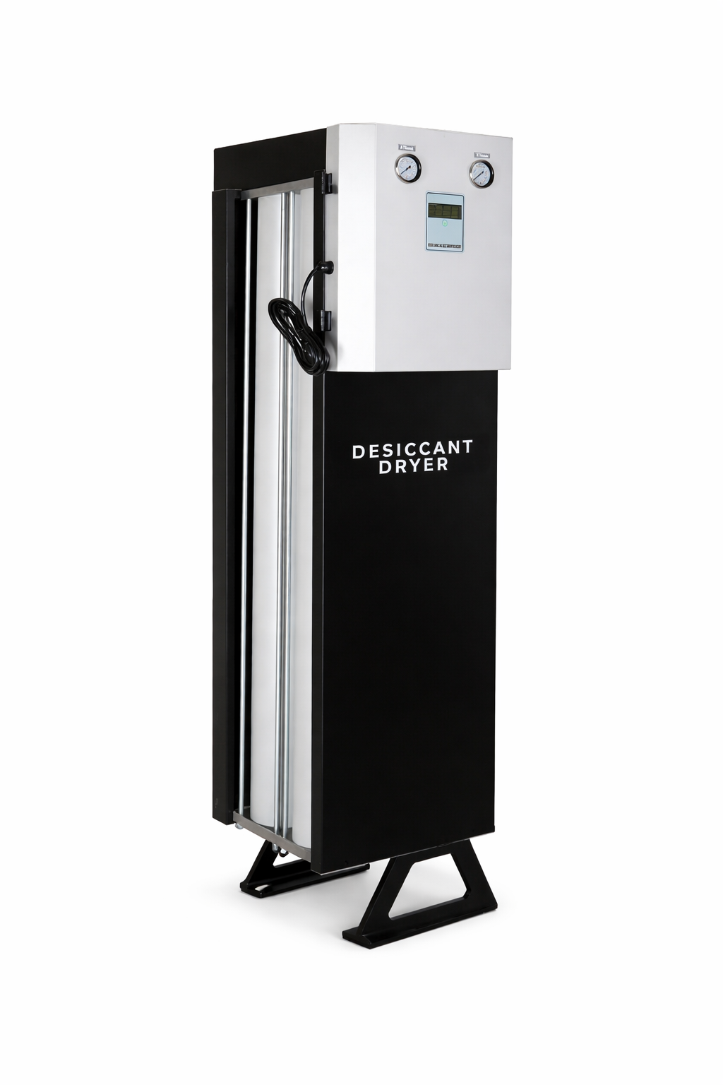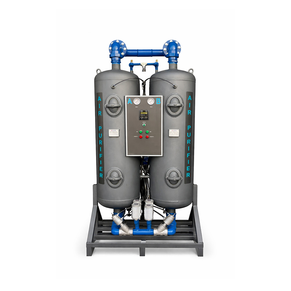 - İkinci kule: Aynı anda rejenerasyon yapılarak desikant malzeme nemden arındırılır. Rejenerasyon işlemi, düşük debili basınçlı hava kullanılarak gerçekleştirilir ve atık hava susturucular üzerinden atmosfere atılır.